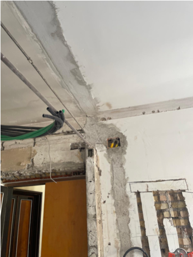 Le colonne sono state prima liberate dalla muratura e poi sottoposte ad un intervento per la creazione delle nuove dorsali termiche.