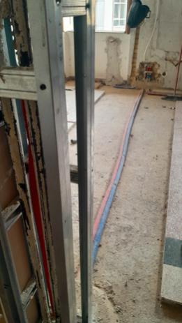 Di conseguenza è stato creato uno scatolare in cartongesso parzialmente concluso, cioè aperto su un lato per lasciar propagare il calore verso il soggiorno.