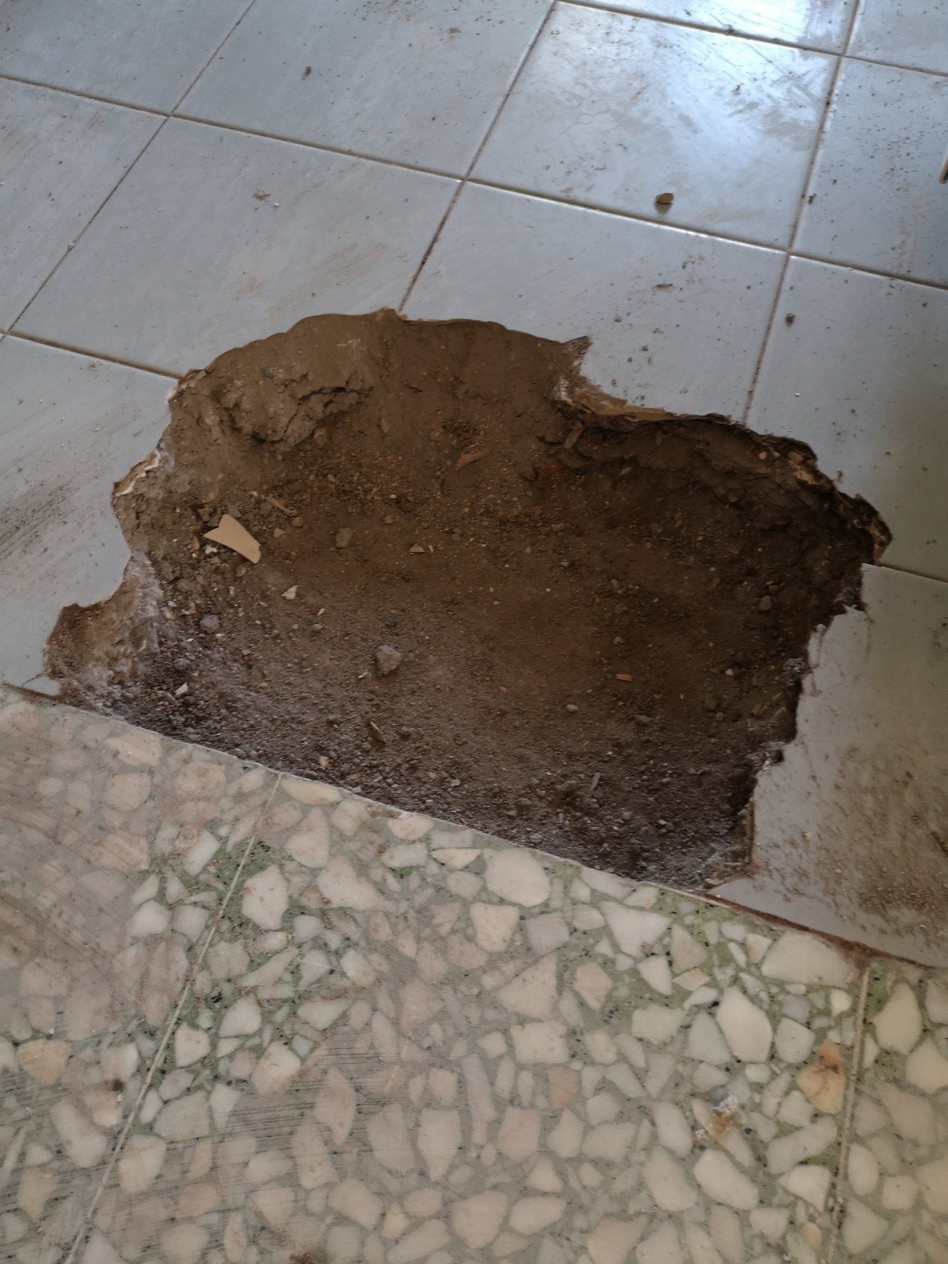 Questo è lo scenario che si presenta dopo le demolizioni, con fili degli impianti che escono e penzolano da diverse parti della casa.