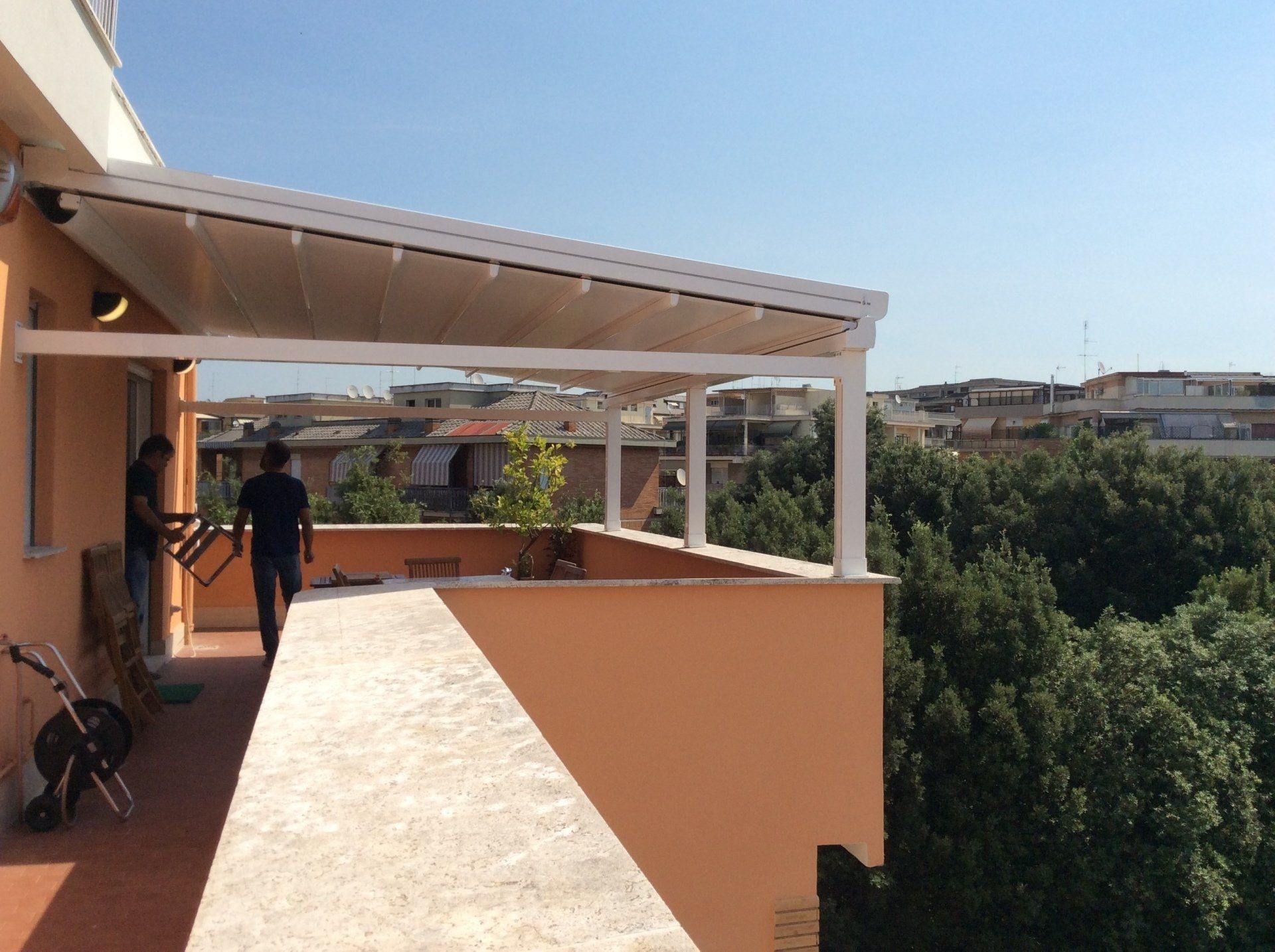 - TERRAZZA GRANDE: progetto e realizzazione di una copertura con teli impermeabili scorrevoli su montanti in acciaio