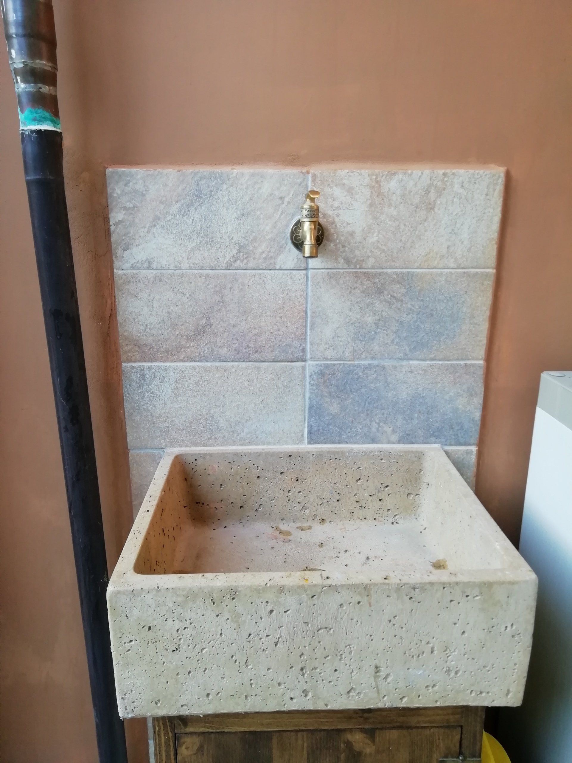 - montaggio di nuove lastre in travertino e stuccatura dei giunti