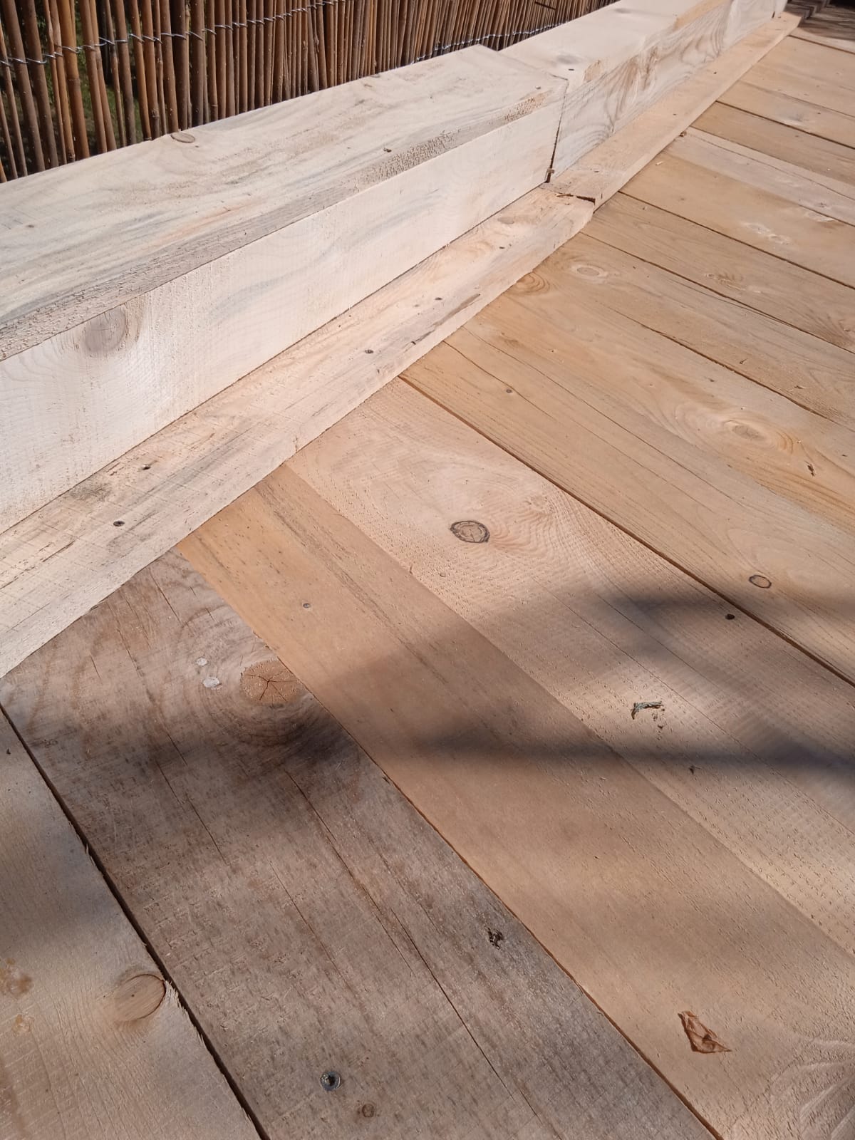 - Pedane in listelli di legno di castagno accoppiati su strato tufaceo