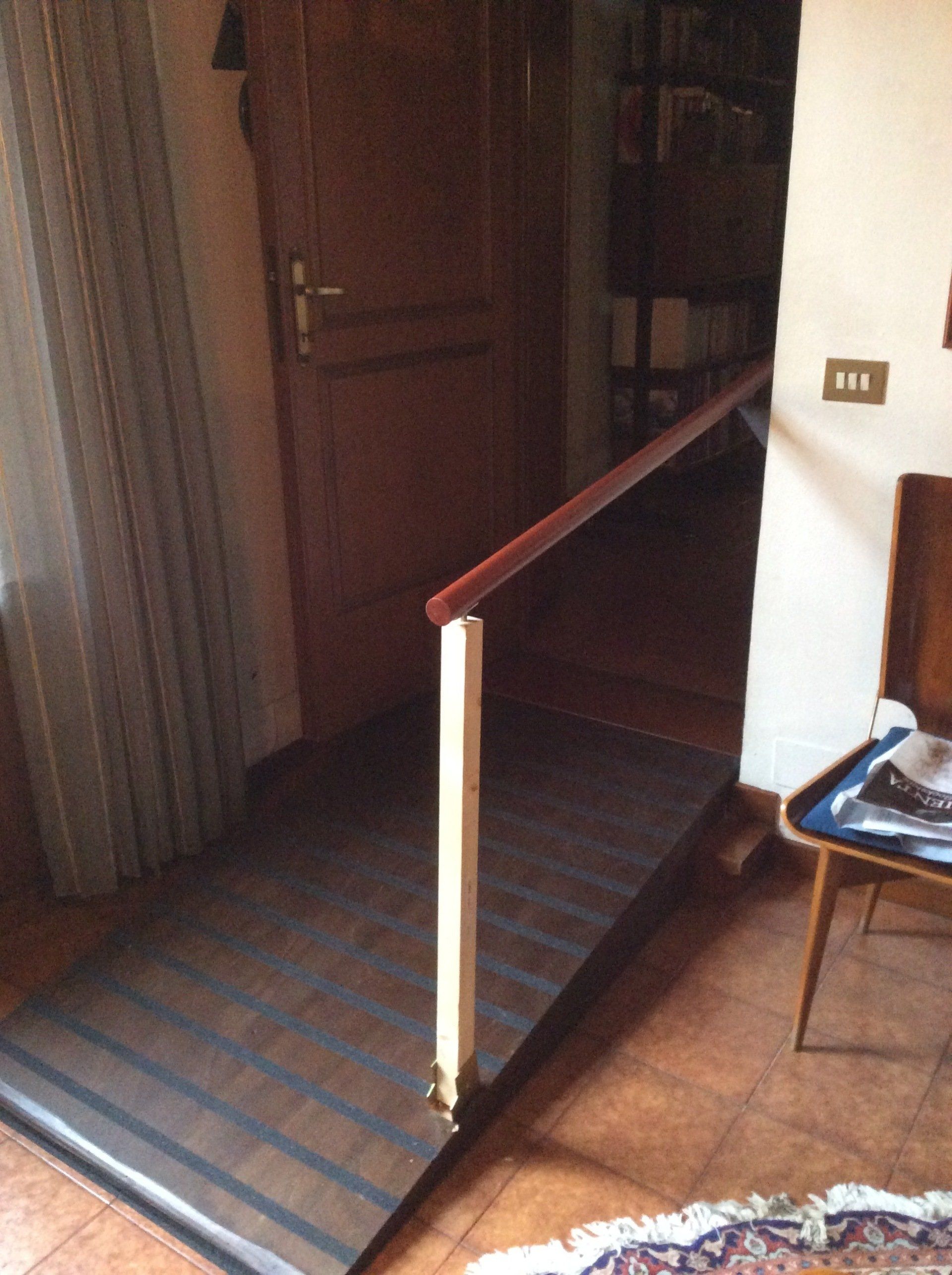 - è stata recuperata e ricollocata anche una bella libreria in noce massello con piedini filettati in ottone degli anni '50, modificata in altezza e stuccata